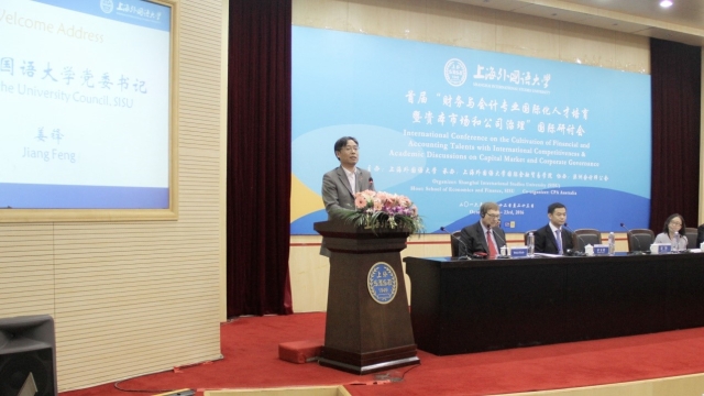 2016年10月22日至23日,由上海外国语大学主办、上海外国语大学国际金融贸易学院承办的首届“财务与会计专业国际化人才培育暨资本市场和公司治理”国际研讨会在上海外国语大学会议中心举行,来自海内外专家、市场人士与相关专业师生共计200多人与会。