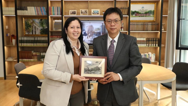 11月10日下午,古巴驻沪总领事梅来迪(Mileidy Aguirre Díaz)女士、哈瓦那大学副校长迪奥尼西奥(Dionisio Zaldívar Silva)先生和对外西班牙语系系主任莉迪亚(Lidia Ester Cuba Vega)女士一行访问我校。李岩松校长在上外—西班牙皇家学院联合研究中心会见外宾。