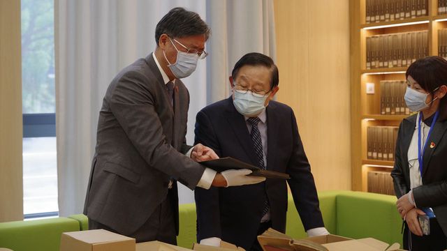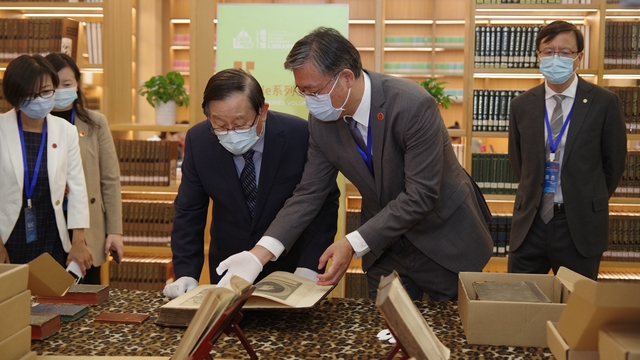 “很难得,很珍贵。”在图书馆阅览区,一批百年以上外文古籍善本引起了万钢主席的兴趣,他戴上白手套,饶有兴致地翻阅了相关古籍。他表示,要注重对古典书籍的数字化,加强国内外古籍书的研究互通。