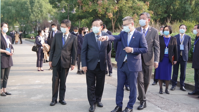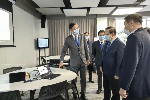 在上海全球治理与区域国别研究院,万钢主席简要了解了研究院“立足本土,放眼全球”的建设理念,并对研究院以课堂教学、科研实践和海外田野调查三位一体为特色的人才培养模式表示赞许。