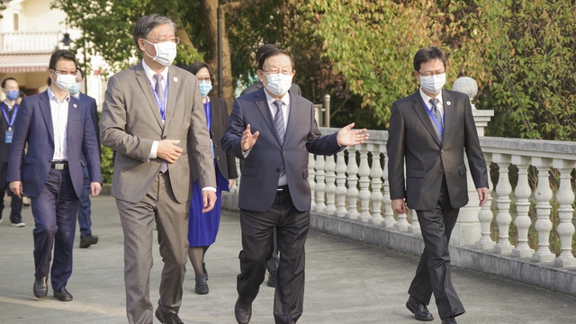 11月5日下午,全国政协副主席、中德对话论坛中方主席万钢来到上海外国语大学,出席中德对话论坛2022年专题视频会议并视察上外。上外党委书记姜锋、校长李岩松、副校长查明建等陪同参观。