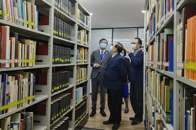 在拥有8000余册学术性外文藏书和10000余册“亚洲文明特藏”图书的“全球文明史文献中心”,万钢主席肯定了上外在推动新时代全球文明史中国话语建设方面的探索与努力,并接受了全球文明史研究所赠予的“新·全球文明史译丛”系列丛书。