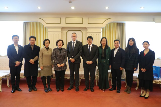 3月13日,新西兰怀卡托大学资深常务副校长阿里斯特·琼斯、国际处副处长牧兰一行访问上海外国语大学,张静副校长在虹口校区国际会议中心会见外宾。