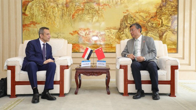 2023年5月29日,阿拉伯埃及共和国驻华大使阿西姆·哈奈菲(Assem Hanafi)一行访问上海外国语大学,校党委书记姜锋在虹口校区会见客人。
