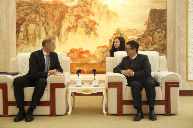 2018年3月20日,波兰新任驻华大使赛熙军(Wojciech Zajączkowski)在波兰驻沪总领事诺沃特尼亚克(Piotr Nowotniak) 的陪同下访问上海外国语大学。