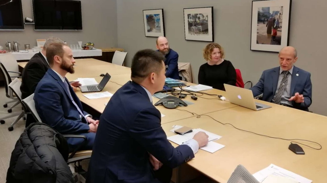 代表团在多伦多大学访问期间,会见了多伦多大学副校长兼密西沙加校区校长Ulrich Krull教授,Ulrich校长亲自介绍了多伦多大学的办学成就与国际合作态势。章玉贵院长向Ulrich校长转达了上外李岩松校长的问候与深化上外与多伦多大学实质性合作的期待。Ulrich校长表示将积极支持多伦多大学与上外的交流与合作。随后,代表团与多大负责国际交流与合作的Dale Mullings教授等举行会谈,就学生交换项目达成实质性合作意向,双方还就联合培养硕士进行了深入交流,表示将着力推动该项目。