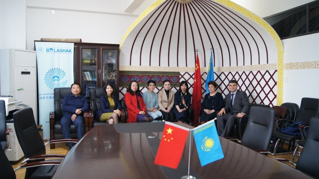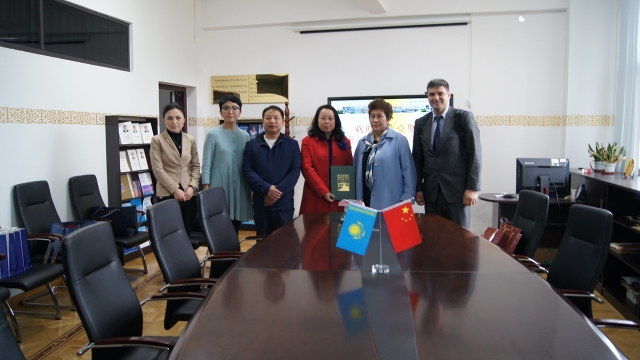 2018年4月13日,哈萨克斯坦纳扎尔巴耶夫育智学校董事会主席沙姆希季诺娃·库利亚什一行访问上海外国语大学。