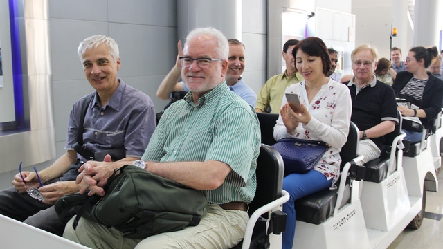 随后,外国专家们乘坐电瓶车在工作人员带领下进入安亭汽车三厂进行实地考察。据工作人员介绍,安亭汽车三厂车身车间最先采用多项业内领先技术,包括激光焊接、CMT焊接技术、最新型多功能穿梭机等。外国专家们在车身车间亲眼目睹了大量机器人忙碌高效作业,体验到现代汽车工业高度自动化的生产流程。