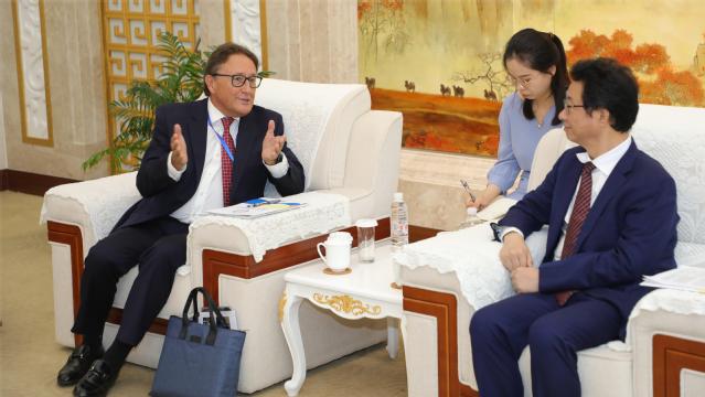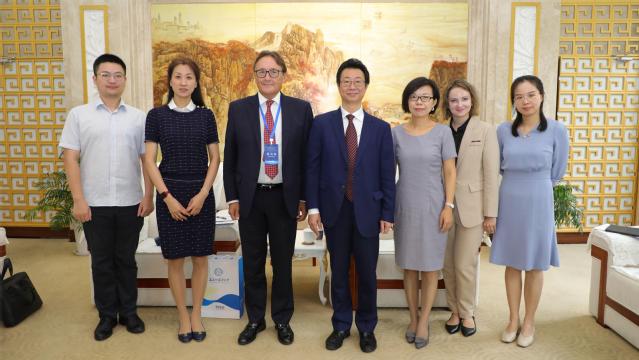 9月12日上午,俄罗斯联邦总统直属国民经济与公共管理学院副校长谢尔盖·米亚索耶多夫(Sergey Myasoedov)一行访问上海外国语大学,副校长查明建在松江校区国际教育中心贵宾厅会见来宾。