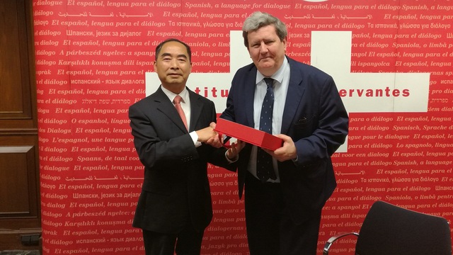 在访问塞万提斯学院总部时,上外代表团与塞万提斯学院总院长Juan Manuel Bonet商谈了塞万提斯学院与上外的合作交流。双方确认,将进一步合作在中国推广西班牙语言文化,助力上外西班牙语专业建设,开展中西学术精品互译。在总院长的陪同下,代表团还参观了塞万提斯学院总部大楼及其学术精品库藏。