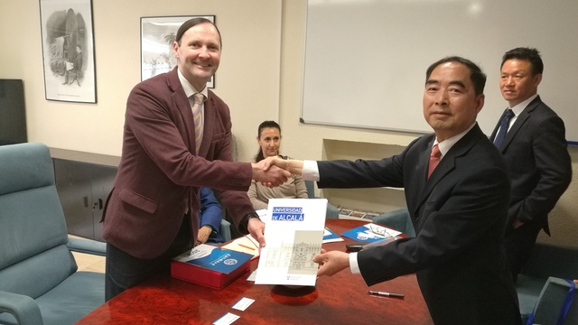 6月4日,上外代表团来到拥有多处世界文化遗产的阿尔卡拉大学,会见了该校外事副校长Miguel Angel Sotelo、经济与企业管理学院院长Maria Luisa Peinado、亚洲项目协调人Ignacio Bravo等。双方就西语/企业管理专业中外合作办学项目、联合培养硕博士、欧盟Erasmus+项目等进行了充分交流。双方一致决定尽快成立中外合作办学项目联合委员会,定期举行会议,协调项目相关事宜,鼓励双方教师合作编写项目专业教材。