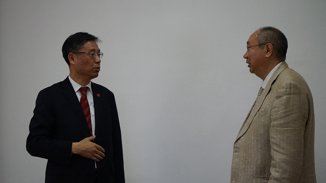 与哈德大学国际与地区合作研究所长、哈萨克斯坦总统战略研究所前所长、哈萨克斯坦“一带一路”专家俱乐部理事长Sultanov交流