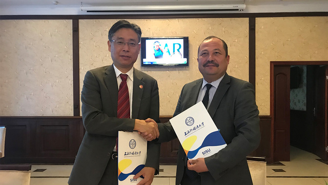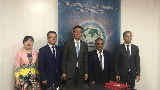 与乌兹别克国立世界语言大学校长Rakhimov共同签署合作协议