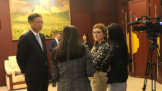 接受古米廖夫国立欧亚大学学生记者团采访