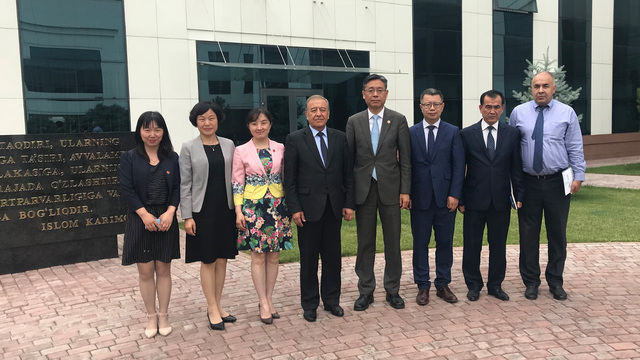 与乌兹别克斯坦总统直属国家行政学院院长、总统教科文卫顾问Kasimov等合影