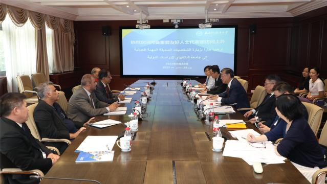 中阿改革发展研究中心、中东研究所、东方语学院、高级翻译学院、对外合作交流处有关负责同志参加会见。