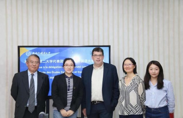 11月2日,法国里昂第二大学副校长吉姆·沃克(Jim Walker)一行访问上海外国语大学。上海外国语大学校长助理、语料库研究院院长胡开宝教授及法语系副主任王蓓丽在松江校区会见来宾。