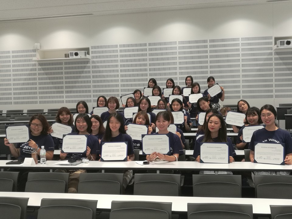 2018年8月3日至8月24日,由上海外国语大学、韩国诚信女子大学、日本昭和女子大学联合举办的第四届“中日韩亚洲女性领导力”暑期项目顺利开展。三周的时间中,三校选拔而出的30位女性大学生轮流去往韩、中、日三国,进行全英文课堂学习、社会实践与文化考察。东方语学院副院长李春虎教授、对外合作交流处副处长王征先后带队赴韩国、日本进行交流。