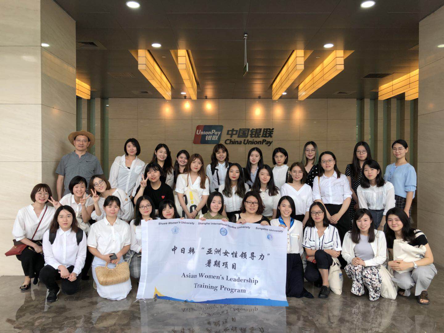 除课堂学习外,三校还开展了多样化的实践活动,促进三国学生思维碰撞和交融。在韩国,同学们前往中日韩三国合作秘书处进行访问交流,并与正在该机构进行交流的其他中日韩同学合作,分别站在另外两个国家的角度对六个议题进行了探讨和陈述,话题涵盖政治、经济、文化等多个方面;在日本,曾在日本政府任职,执笔日本首部《女性白皮书》,并著有《女性的品格》等代表作的坂东真理子女士为同学们进行了关于职场女性领导力的精彩演讲,详细介绍了日本职业女性现状以及面临的挑战;在中国,我校则组织学生赴中国银联总部进行参观学习,由银联国际市场部徐钰、邢颖女士为同学们开设跨国金融行业市场拓展的专题讲座,并结合多个案例,向同学们介绍了女性在中国职场的现状,分享了她们对“女性领导力”的理解,鼓励来自中日韩三国的女同学们敢于追梦、勇于圆梦,不畏挑战,突破自我。