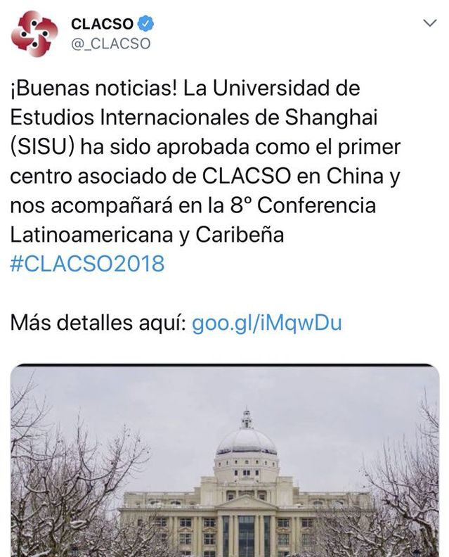日前,“拉丁美洲社会科学理事会”(以下简称“拉美社科理事会”,西语缩写为CLACSO)发布新闻,宣布推选上海外国语大学正式成为其成员机构,我校是中国首位“拉美社科理事会”成员。
