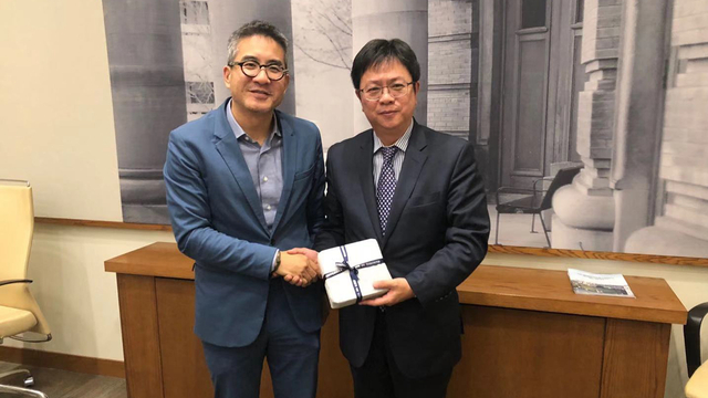 李岩松校长与芝加哥大学国际事务副校长交换纪念品