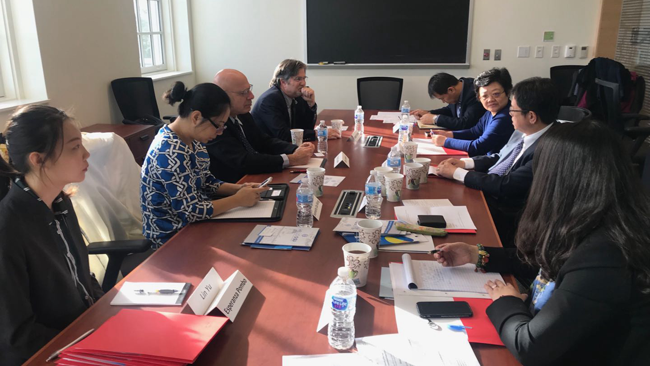 在多伦多大学访问期间,副校长Joe Wong带领全球事务与公共政策学院资深教授、全球G20研究专家John Kirton教授,艺术学院院长Michael Ratcliffe教授,中加研究中心主任Lisa Rose Mar, Richard Charles Lee等多个部门负责人与代表团进行会谈。李校长关于上外近年来建立和发展的上海全球治理与区域国别研究院、中阿改革发展研究中心、卓越学院和中国学项目的介绍,引起了对方浓厚的兴趣,双方约定将在中国学硕士项目、联合创办暑期项目、硕士双学位等方面开展合作。