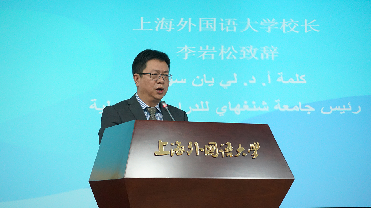 李岩松校长在致辞中首先对第五期研修班学员顺利完成研修课程表示祝贺,对中心的工作提出了三点想法。第一,希望中心能够成为中阿间增进相互认知、增信释疑的有效平台;第二,希望中心成为中阿在“一带一路”倡议下实现平等交流的思想平台;第三,希望中心能成为汇集中阿国别区域研究高端人才的蓄水池。李校长同时指出,中国与阿拉伯国家的友好关系具有深厚的历史传统和坚实的现实基础。当前,由于西方霸权话语体系、国际地区不稳定因素等影响,中阿双方出现了一些认知障碍。中心邀请各位来到中国、来到上海、来到上外,就是希望和大家进行平等、坦诚的交流与对话。在改革发展的道路上,我们始终同阿拉伯国家站在一起,互通有无、互学互鉴,共同进步。中心希望为中阿学者搭建平等交流的思想平台,欢迎各位来自阿拉伯国家的朋友对中国的发展提出自己的看法,以增进相互理解,加强合作交流,共同构建中阿命运共同体。上海外国语大学是中心的承办单位,希望中心能积极整合学校政治学、外国语言文学等多学科资源,加大阿拉伯国家研究领域领军人才引进力度,以灵活多样的方式凝聚、培养一批国内外高水平的专兼职智库研究人员,推进中阿在治国理政和改革发展领域的经验交流与深层次合作。