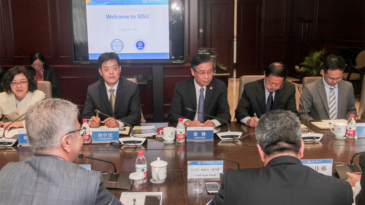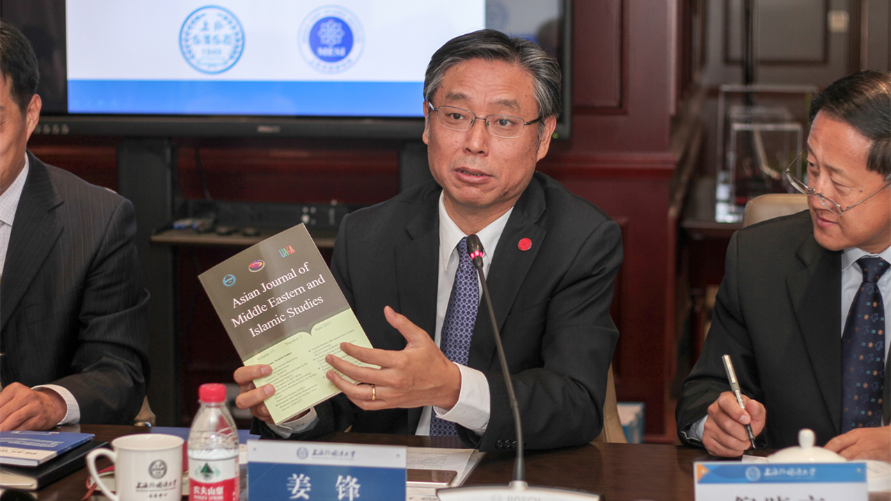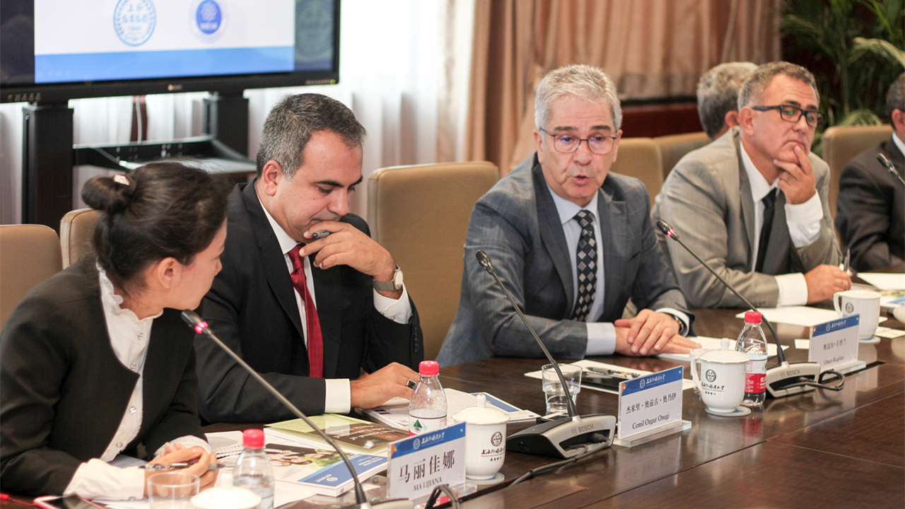 姜锋书记对土耳其客人来访表示热烈欢迎,介绍了上海外国语大学的发展状况以及近年来与伊兹密尔省、伊兹密尔经济大学等机构之间的交往情况,希望进一步加强双方之间的教育学术交流,并向对方赠送了中东研究所主办的中英文期刊。刘中民所长介绍了中东研究所的发展历史、机构设置、学术研究和学术期刊等情况。