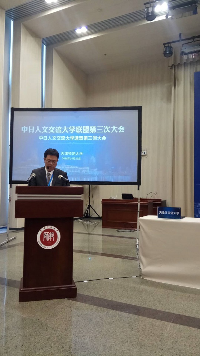 2018年10月29日,中日人文交流大学联盟第三次会议在天津师范大学举行。上外是联盟校成员之一,李岩松校长代表上外在会上作了重要发言。