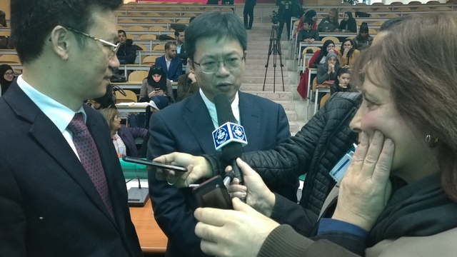 接着,上外代表团前往阿尔及利亚国立高等政治学院访问并签署合作协议,李岩松受邀作了关于“一带一路”倡议的专题讲座,并与该校师生热烈互动。然后,李岩松一行走访了阿尔及利亚外交部和中国驻阿尔及利亚大使馆,会见了中阿改革发展研究中心往期阿拉伯国家官员研修班学员。学员们感谢中心提供了解中国改革开放政策和治国理政经验的机会,期待中阿双方多领域的持续合作。