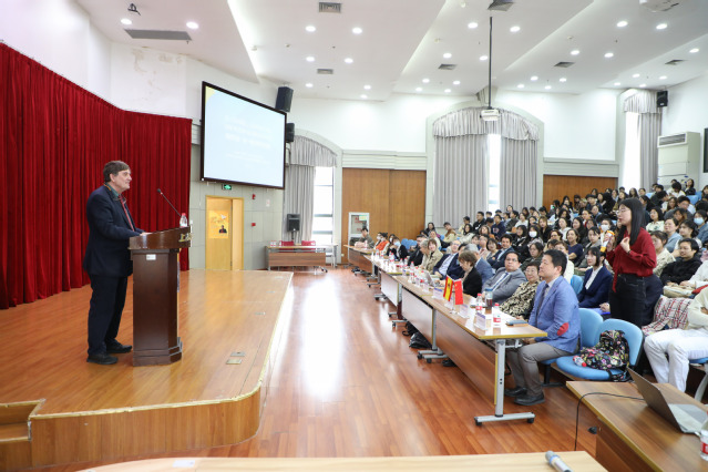 会谈后,蒙特罗以西班牙语:新一轮全球化的语言为主题,为来自各大院校的300余名西班牙语专业师生带来了一场精彩的讲座。他深入阐述了西班牙语在全球范围内的广泛应用,以及作为世界上母语使用人数第二多的语言在全球化进程中的重要地位。蒙特罗强调西班牙语的发展历程是一部多元文明相互借鉴、融合发展的历史,它不仅是一种语言工具,更承载着平等、包容的文明观念,应深入理解西班牙语的多元文明内涵及其对当今世界的价值。讲座现场气氛热烈,蒙特罗与师生进行了深入交流与互动