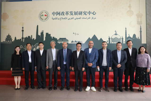 代表团一行还参观了中阿改革发展研究中心展览室,深入了解了中心自成立以来在研修培训、人才培养、智库研究、人文交流等方面的成果。