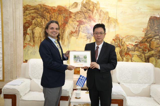 李岩松对总领事一行的到访表示欢迎,介绍了上外希腊语专业的发展历史。他表示,希腊驻沪总领馆多年来为我校希腊语专业的发展提供了大力支持,希望总领事能够继续推动上外与希腊各高校和学术机构间的交流与合作。