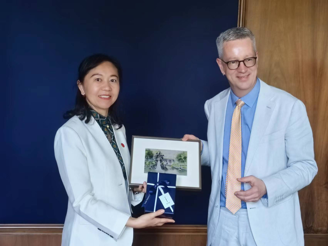 代表团拜会了我国常驻联合国教科文组织代表团大使杨新育、中国驻德国大使馆公使张军辉、公参黄伟。尹冬梅书记代表学校看望上外法国校友会会长及在在德校友代表,介绍学校的最新发展动态,关心他们在欧工作学习生活情况,尹冬梅表示,校友会是校友和学校之间的纽带,是校友沟通交流、互帮互助的平台,祝福校友们在海外学习工作生活顺利,欢迎常回母校看看。