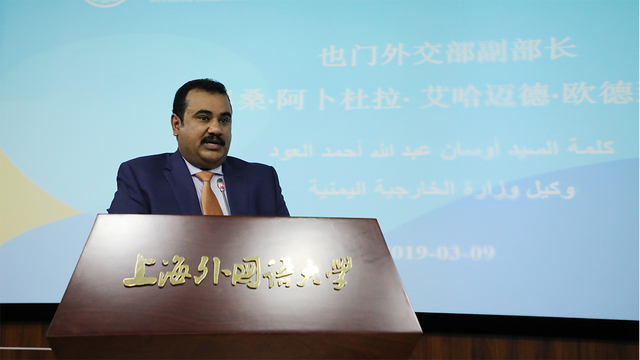 奥桑·欧德副部长对外交部、教育部、上海市政府和上海外国语大学表示感谢。他指出,中也友谊建立在两国历史友好往来和当前平等合作的基础上,中也关系不受任何突发性因素的影响,感谢中国政府对也门统一、主权、独立和领土完整的坚定支持,感谢中国向也门提供的人道主义援助。此外,他还表示,赞赏中国的“一带一路”倡议和人类命运共同体理念,这将有助于推动整个国际社会的共同协商与多边合作。