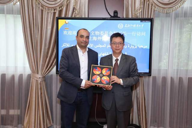 埃及旅游和文物部国际展览负责人穆敏,上外对外交流合作处、世界艺术史研究所等有关部门负责人陪同参加会见。