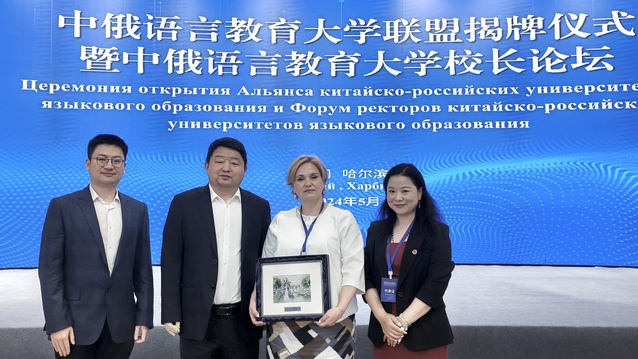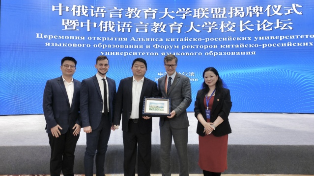 5月18日至19日,上海外国语大学副校长林学雷应邀出席中俄语言教育大学联盟揭牌仪式暨中俄语言教育大学校长论坛并做特邀发言。教育部国际合作与交流司、黑龙江省人民政府、黑龙江省教育厅相关负责人及黑龙江大学、莫斯科国立语言大学等37所中俄高校代表共庆联盟揭牌成立。