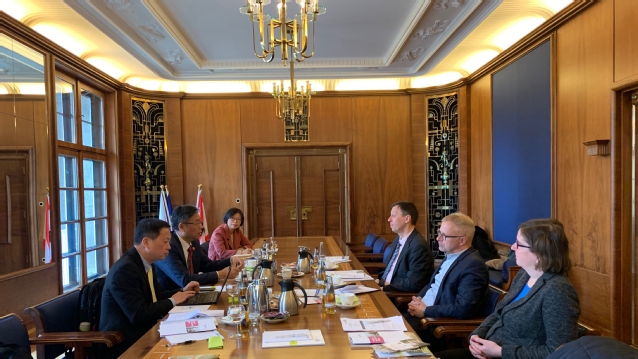 为调研欧洲局势和中欧关系,同时拓展与相关政府和学术管理机构的合作,代表团走访了德国外交部、德国经济与能源部、德国雇主协会、德国学术与政治基金会、德意志学术交流中心,与司佩兰(Petra Sigmund)、李素佳(Svenja Schlichting)、克拉默(Ingo Kramer)、华玉洁(Gudrun Wacker)、高亭亭(Nadine Godehardt)、吕兰德(Dorothea Rüland)、施泰因巴赫(Jörg Steinbach)等部门和机构负责人进行了广泛沟通和交流,较深入地了解了欧洲社会面临的挑战和经济发展现状,并就智库建设和研究合作达成多个合作意向。