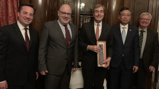 出访期间,姜锋一行还拜会了中国驻德国大使吴恳、中国常驻联合国教科文组织大使衔代表、上外校友沈阳、驻德公使、上外校友张军辉、中国联合国教科文组织全国委员会原秘书长、联合国教科文组织非洲部门协调和伙伴关系局局长杜越、驻德使馆教育处刘立新公参、驻法使馆教育处杨进公参,向他们介绍了上外近年来改革发展情况以及在人才培养、学术研究和智库建设等方面逐步形成的上外特色。他们充分肯定上外的办学思路,支持上外的发展战略,希望上外充分利用国际合作资源,深化国际合作,以话语建构为切入点为深化中欧、中德、中法双边关系及多边关系的研究贡献上外力量,同时希望上外能为外交部、驻外使领馆以及国际组织输送更多“会语言、通国家、精领域”的国际化人才。