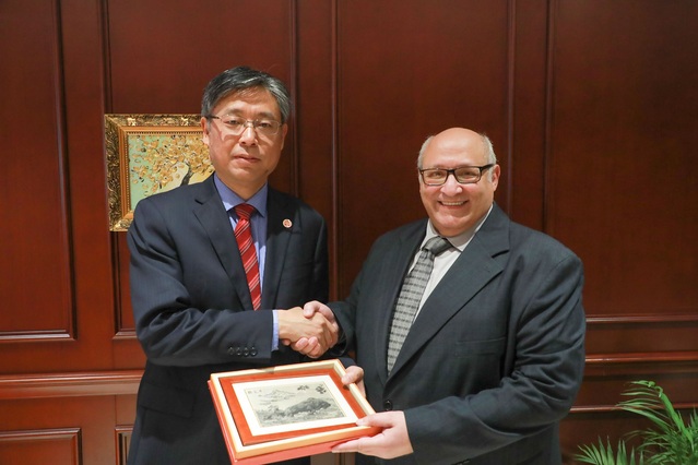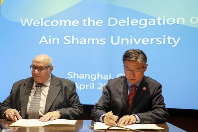 2019年4月29日,埃及艾因·夏姆斯大学校长穆罕默德·伊扎特率代表团一行5人来访上海外国语大学虹口校区,校党委书记姜锋热情接待埃及客人。双方就师生交流和科研合作进行了深入洽谈,达成广泛共识,并共同签署校际合作备忘录。