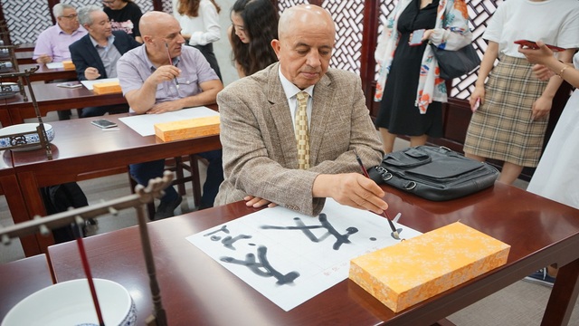 此外,中心还组织代表团成员体验中国传统书法文化,并欣赏由阿语系王志明、程霆宇同学带来的阿语歌曲表演《生活》。双方互动气氛活泼友好,媒体朋友们纷纷表示出对中国文化的喜爱与热情。