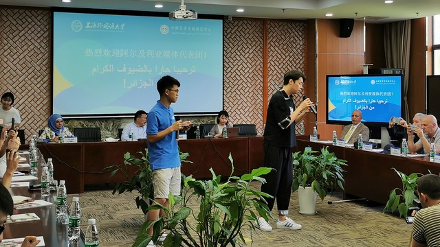 9月13日上午,中阿改革发展研究中心(以下简称“中心”)在上海外国语大学松江校区国际教育中心接待了阿尔及利亚媒体代表团。代表团由阿尔及利亚-中国友协主席塞麦尔·德贝什教授带领,12家阿尔及利亚主流媒体的14名代表与中心专家学者及阿语系同学进行座谈交流。