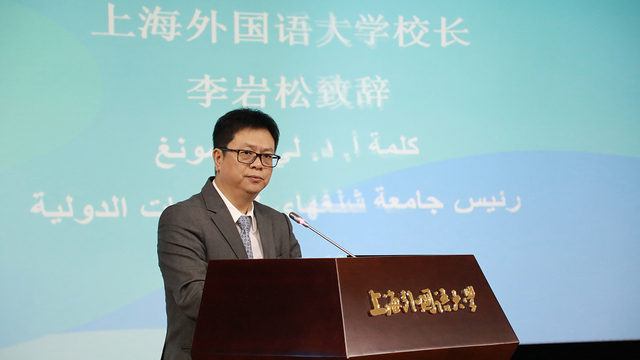 李岩松校长首先致欢迎辞。他回顾了历史上中叙两国在古丝绸之路上相亲相交的友好情谊,指出两国当前是共建“一带一路”互利共赢的好兄弟、好伙伴。重建问题也是发展问题,举办此次研修班正是为两国交流改革开放和经济建设经验搭建对话平台。中阿改革发展研究中心迄今已成功举办六期研修班,167名阿拉伯国家中高级官员参与其中,在推进中阿双方在治国理政和改革发展等领域的经验交流与合作方面发挥重要作用,取得显著成效。他特别提到,中心在去年五月举办第四期阿拉伯国家官员研修班,即叙利亚重建与发展研修班,叙利亚电力部副部长尼达尔·卡尔穆什带队11位学员参加研修。作为中阿改革发展研究中心的承办单位,上外将继续发挥外语人才优势和区域国别研究优势,为中阿和中叙友好关系的发展做出积极努力。