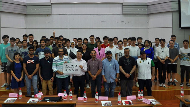 最后,阿语系副主任周放老师上台发表讲话,为科威特客人们介绍了上外阿语系的基本情况,强调与科威特青年增进彼此间友好关系的重要性,并提议上外与科威特的大学进一步深化各领域合作。科威特青年代表团团长穆提里先生则表达了对此次活动的高度赞赏以及对阿语系同学们语言水平的高度认可,随后宾主合影留念,相互进行了热情友好的交流讨论。