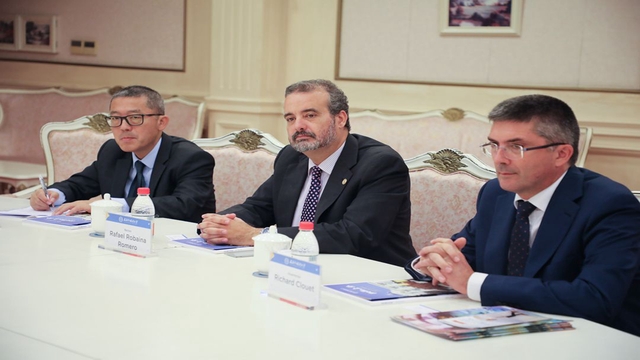 2019年10月14日下午,西班牙拉斯帕尔马斯大学校长拉菲阿尔·罗百纳(Rafael Robaina Romero)率其大学分管国际合作副校长理查德·克鲁艾特(Richard Clouet)和国际化与语言处处长励立德(Xavier Lee Lee)一行访问我校,杨力副校长在虹口会议中心热情接见,双方展开亲切友好会谈。
