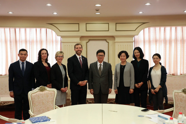 会见时在座的还有国际金融贸易学院院长章玉贵,英语学院院长助理周小舟等。