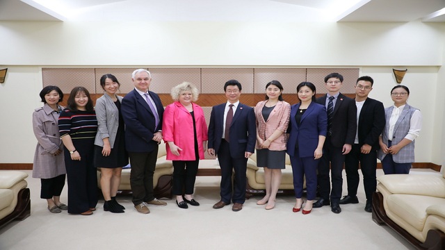 随后,国际教育学院院长金慧、新闻传播学院外事副院长诸廉与肯特一行就新闻学、传播学、国际教育、翻译等领域的研究生双学位、师资互访、短期社会实践项目等合作进行了详细讨论。