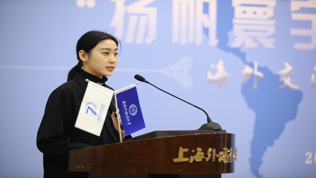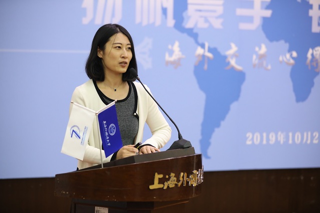 分享会上,2016级法学专业本科生朱贺、2016级朝鲜语专业本科生赵晶一、2017级英语语言文学硕士生汤卓裔与大家分享了她们荷兰莱顿大学、韩国庆熙大学以及联合国纽约总部进行学习、实习的经历。从为什么出国交流,到如何申请海外交流或国际组织实习,再到自己在交流中的经历和收获,分享人展示了上外青年的力量与担当,鼓励大家不负青春年华,不辱青年使命,敢于筑梦、勇于追梦、勤于圆梦。刚刚从上海国际艺术节归来的飞那儿剧团与大家分享了2019年暑假赴波兰进行文化交流的经历和思考,并以莎士比亚戏剧中经典女性角色为切入,与观众开展了沉浸式互动交流,展示了海外学习成果。中日韩亚洲女性领导力暑期项目的同学讲述了自己在项目中收获的知识、思考和友谊,并将自己的收获用幸运饼干的方式分享给每一位观众。精彩的交流、深刻的思考和热烈的现场互动,充分展现了上外学子的激扬青春和磅礴力量。