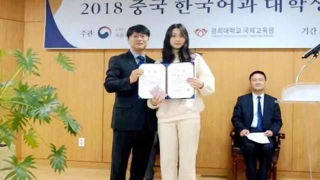 海外交流期间,赵晶一每天跟紧授课老师的学习进度,并每周自发的与语伴进行笔译练习,最终取得了优异的成绩,被授予“韩国国立国际教育院长奖”,并有幸代表全体中国留学生在结业式上向驻韩大使馆参赞与韩国国立国际教育院院长汇报留学心得。