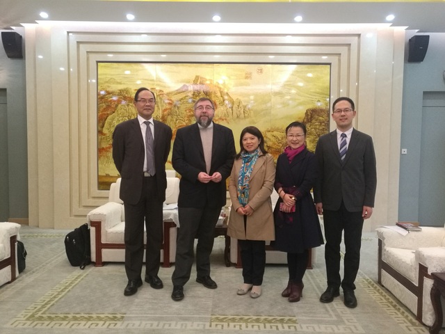 11月27日,比利时蒙斯大学副校长Pierre Duez教授、翻译学院张国宪教授一行,访问上海外国语大学。校党委副书记钱玲在虹口校区会议中心会见比方代表团。